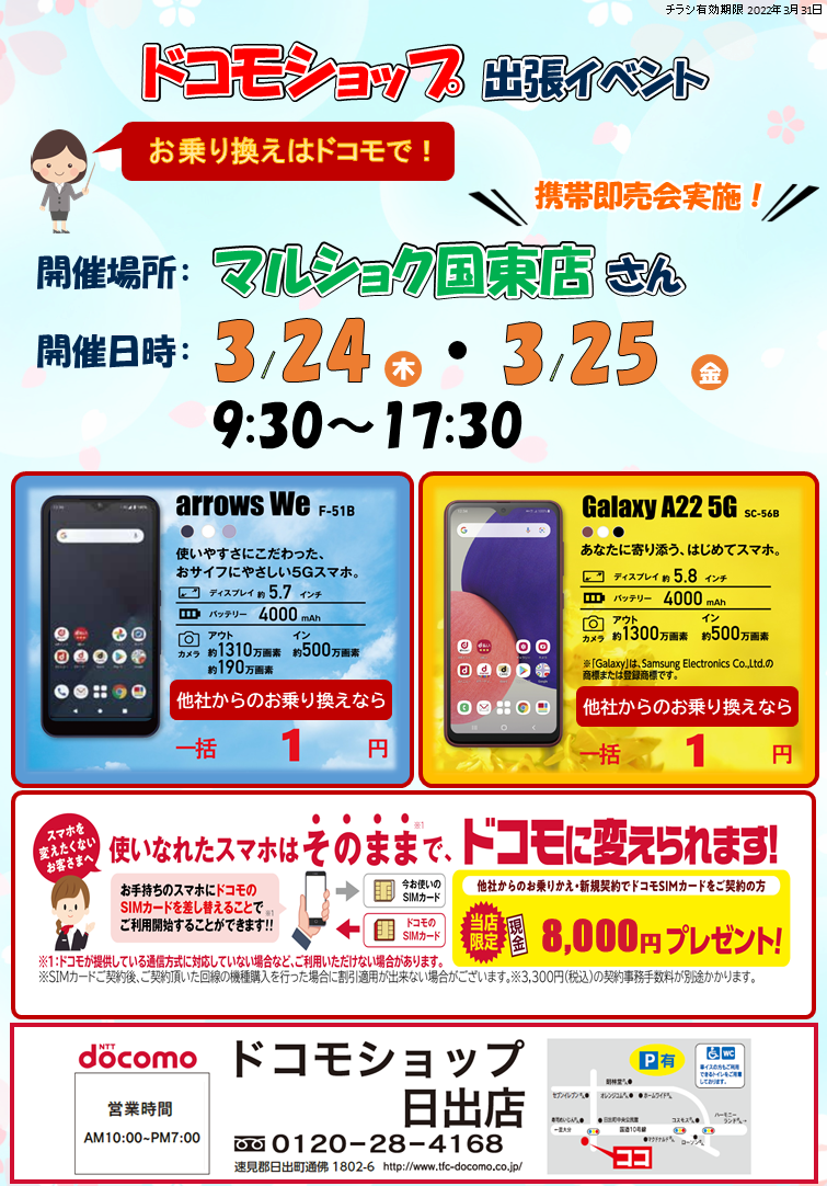 ドコモショップが「マルショク国東店」さんに出張します