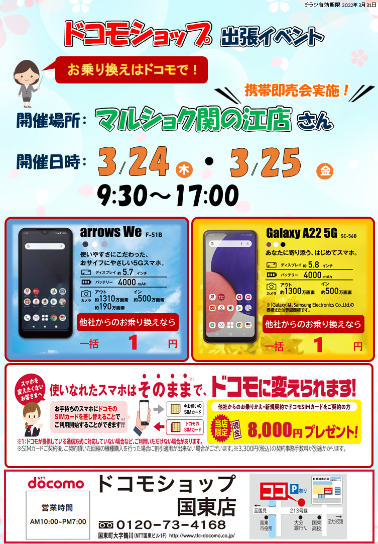 マルショク関の江店出張イベント 3/24・3/25 2022.03.14