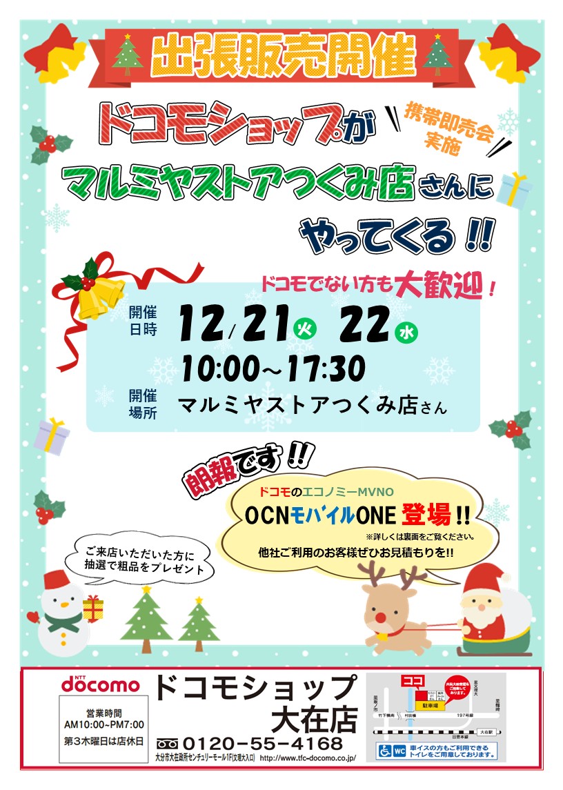 ドコモショップが「マルミヤストアつくみ店」さんに出張します