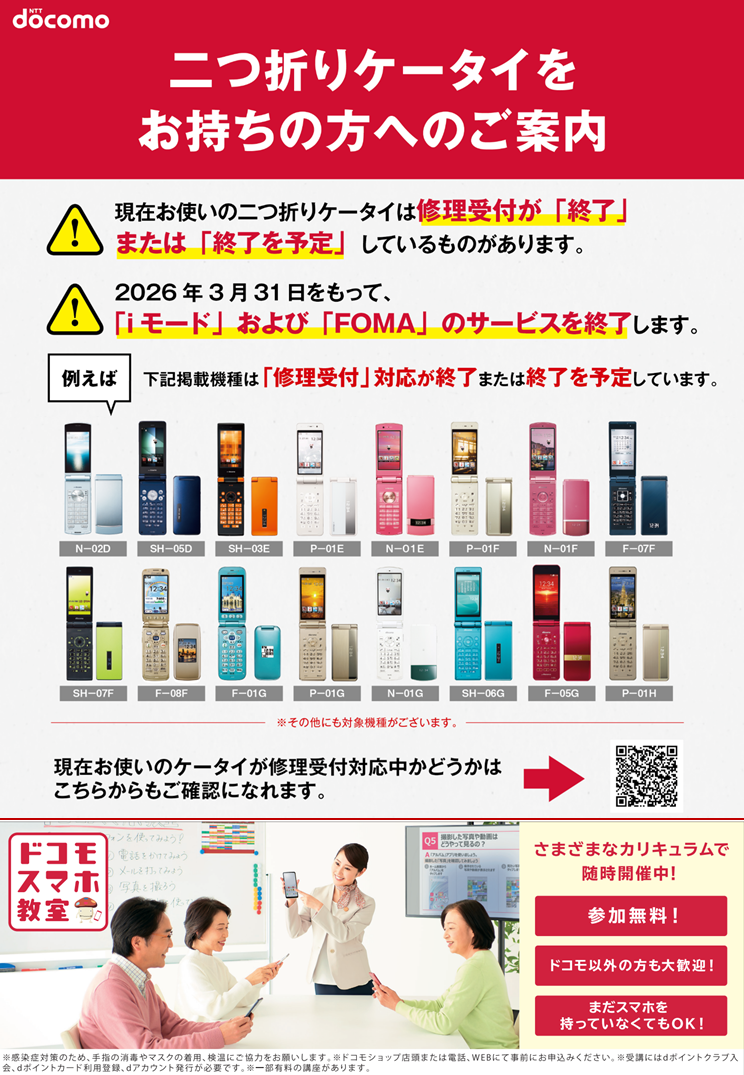 携帯電話・スマートフォンの買い替えをまだご検討でない方、ドコモをご利用でない方も、お気軽にお立ち寄りください。料金相談やスマホ除菌も行います。