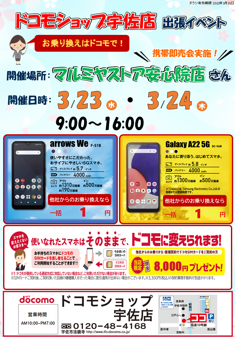 ドコモショップが「マルミヤストア安心院店」さんに出張します