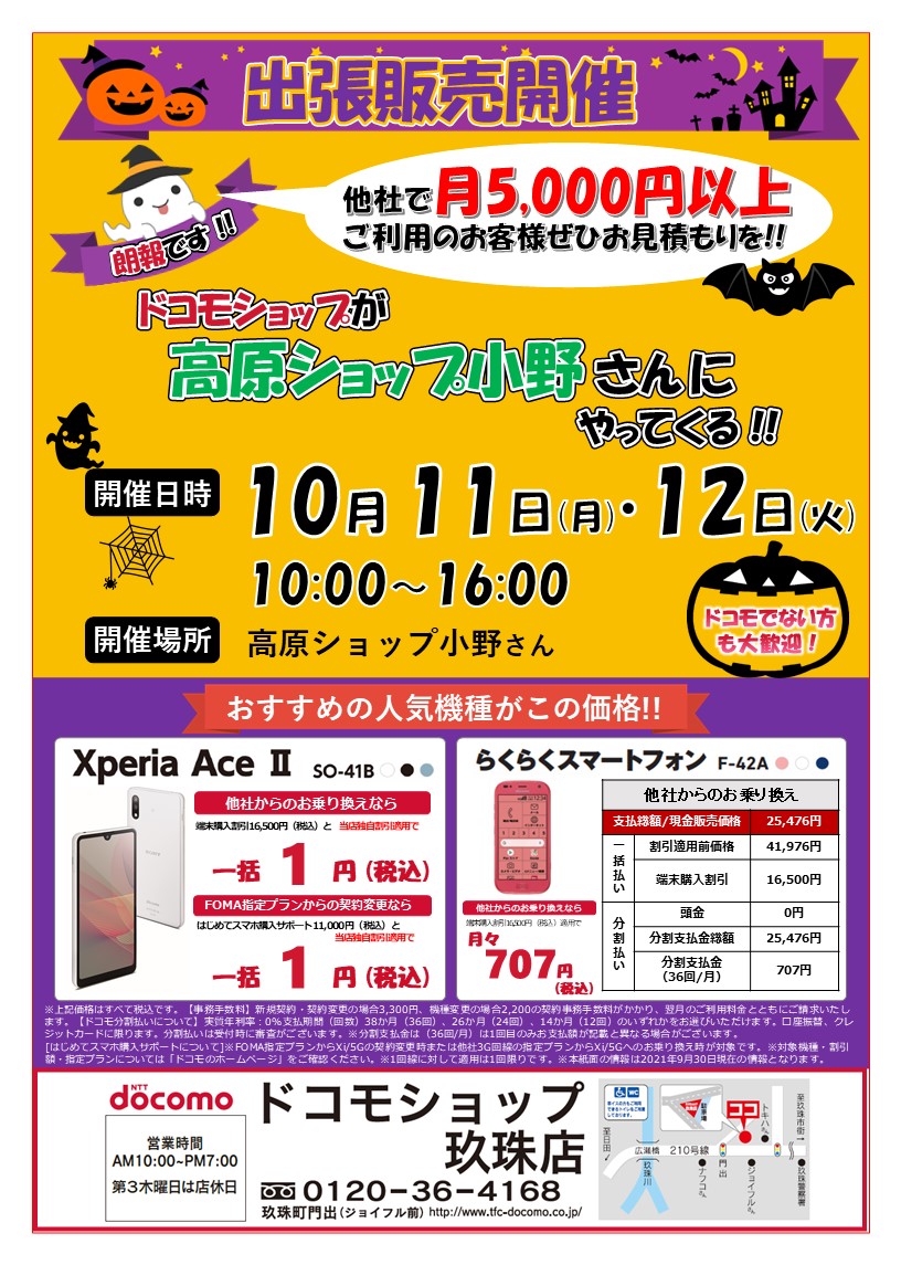 日時:2021年10月11日(月)~12日(火) 10:00~16:00場所:高原ショップ小野